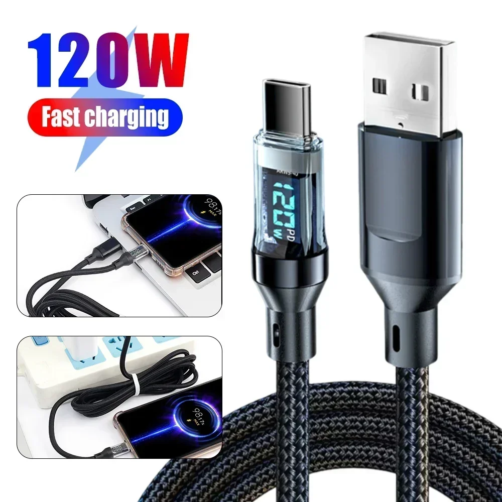 NNBILI 100W USB C 120W USB A charging cables with LED display screen, USB C=C-C,USB A=A-C,Xiaomi iPhone、 Samsung not compatible