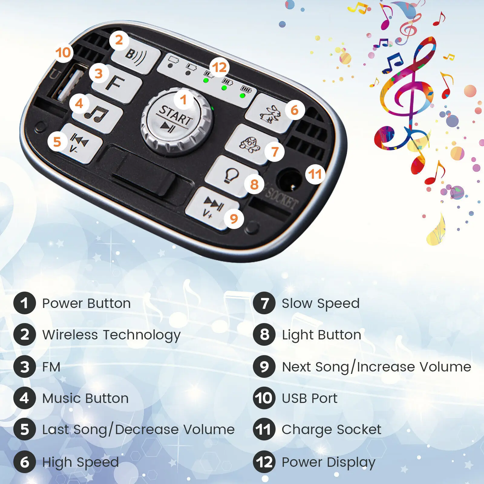 With a 25cm wide seat, this kids ride on UTV is enough for two children to sit comfortably. And both seats are equipped with safety belts to ensure high safety. Moreover, the music function, vivid horn sound and cool lights add more fun. This ride on car comes with a remote control for parents to adjust the speed, control the direction, etc. And kids can also control the car independently via the steering wheel and foot pedal. Equipped with 4 anti-wear wheels, 2shock-absorbing springs and slow start function, this 2-seat UTV is built to handle any terrain. Made of high grade PP and steel material, this electric UTV ensures a long service life and is suitable for kids between 3-8 years old with a weight limit of 59 kg.