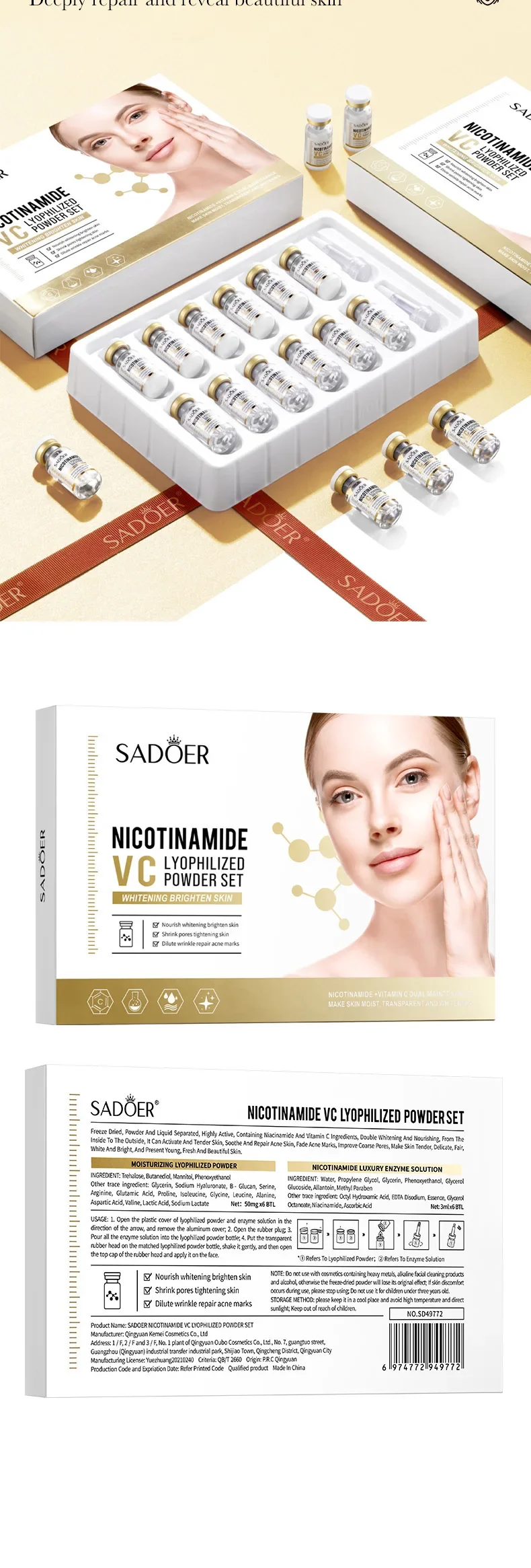 Face Serum Niacinamide Whitening Freeze-Dried Podwer Set Shrink Pores Hydrating Brighten Anti-Aging Anti Wrinkle Skin Care fits perfectly and looks amazing!