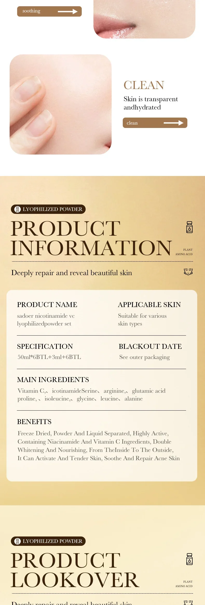 This product is a must-have! I highly recommend Face Serum Niacinamide Whitening Freeze-Dried Podwer Set Shrink Pores Hydrating Brighten Anti-Aging Anti Wrinkle Skin Care.