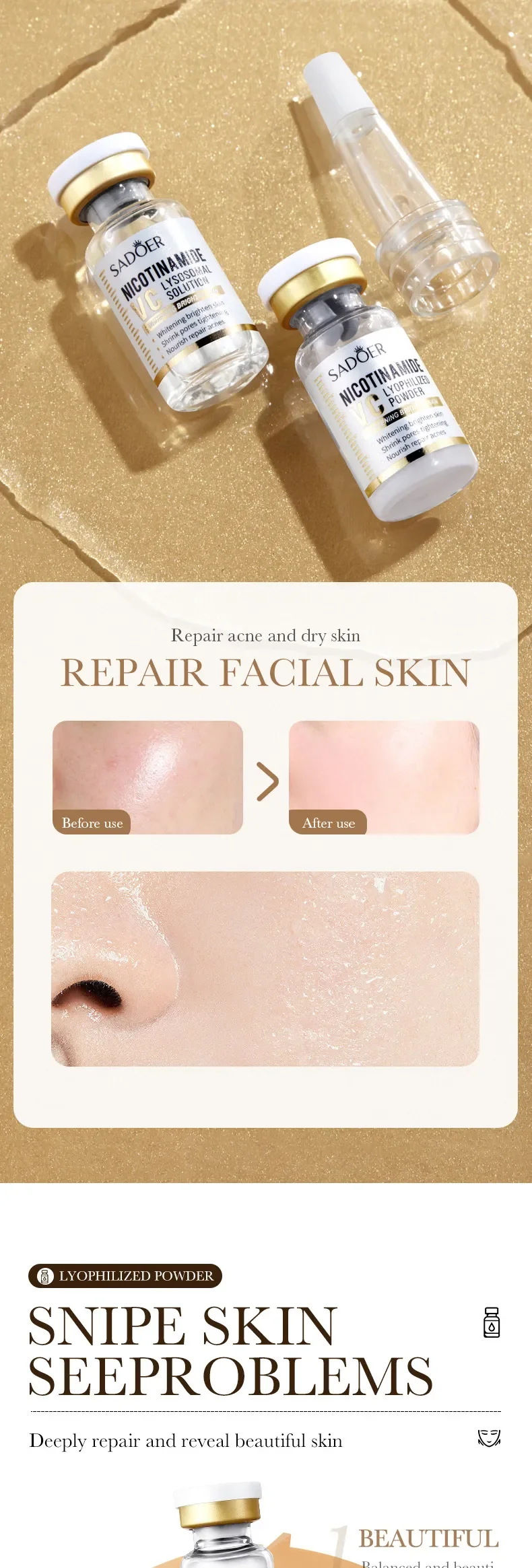 Perfect fit! The quality of Face Serum Niacinamide Whitening Freeze-Dried Podwer Set Shrink Pores Hydrating Brighten Anti-Aging Anti Wrinkle Skin Care is top-notch.