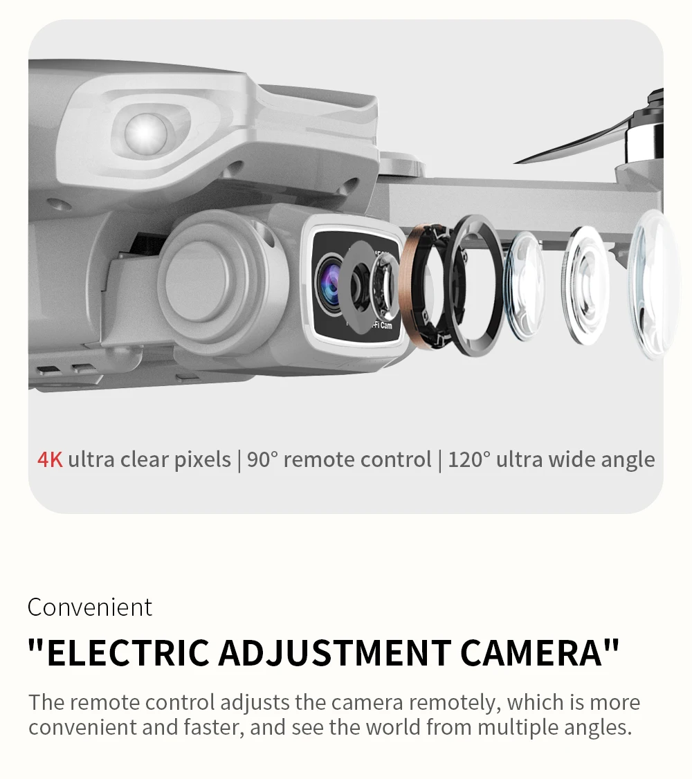 - ESC 4k HD Wide Angle Camera. can be adjust the angle 120°by controller.