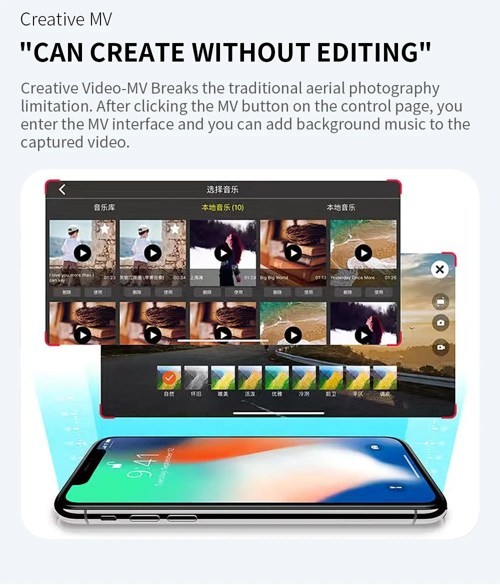 – Optical Flow Positioning.Fixed point height,and it can shoot more easily and steadily indoor.