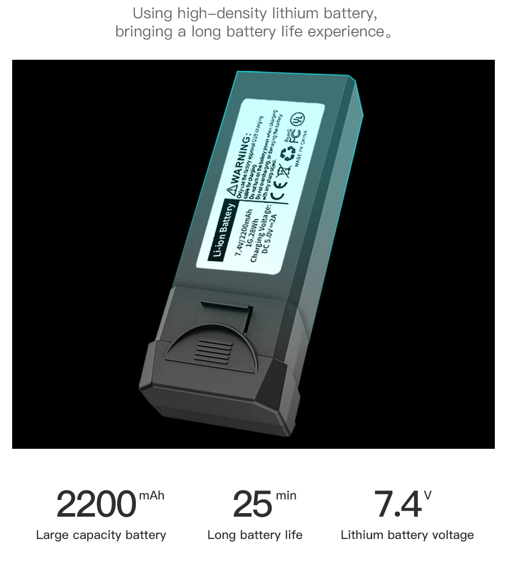 Quadcopter Rechargeable Battery: 7.4V 2200mAh Lithium Battery (Included)
