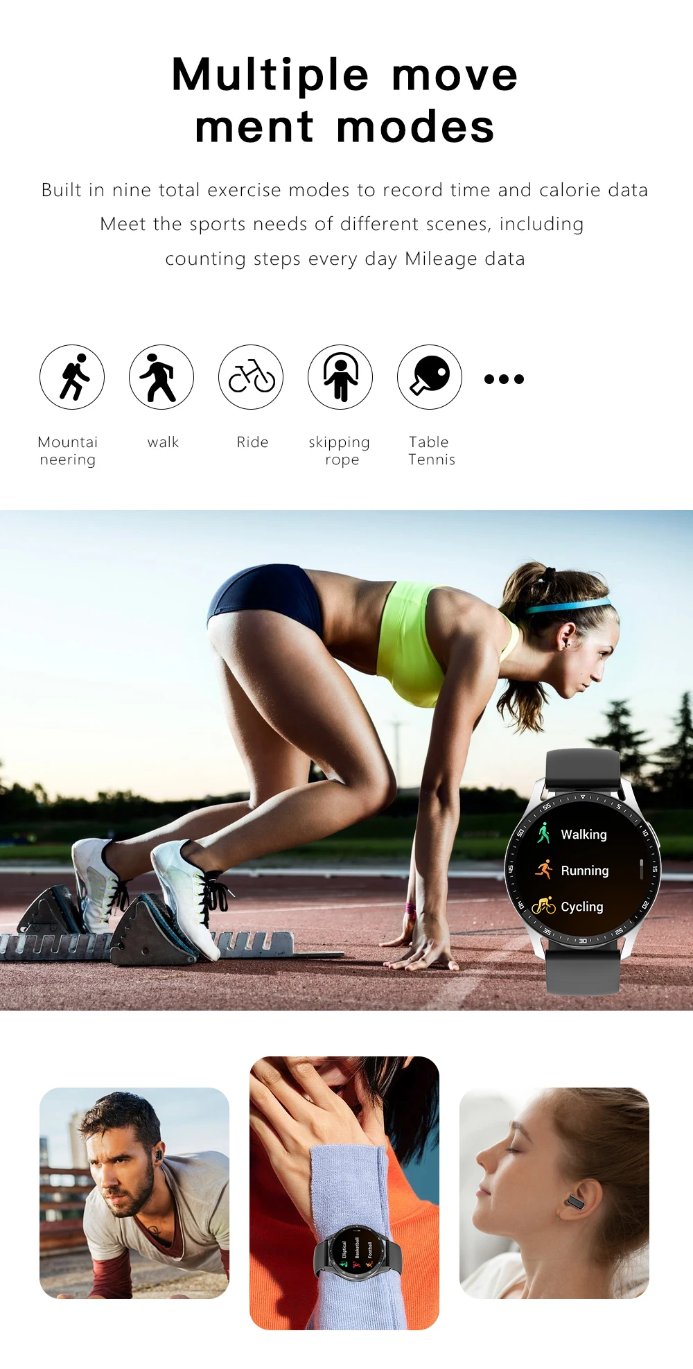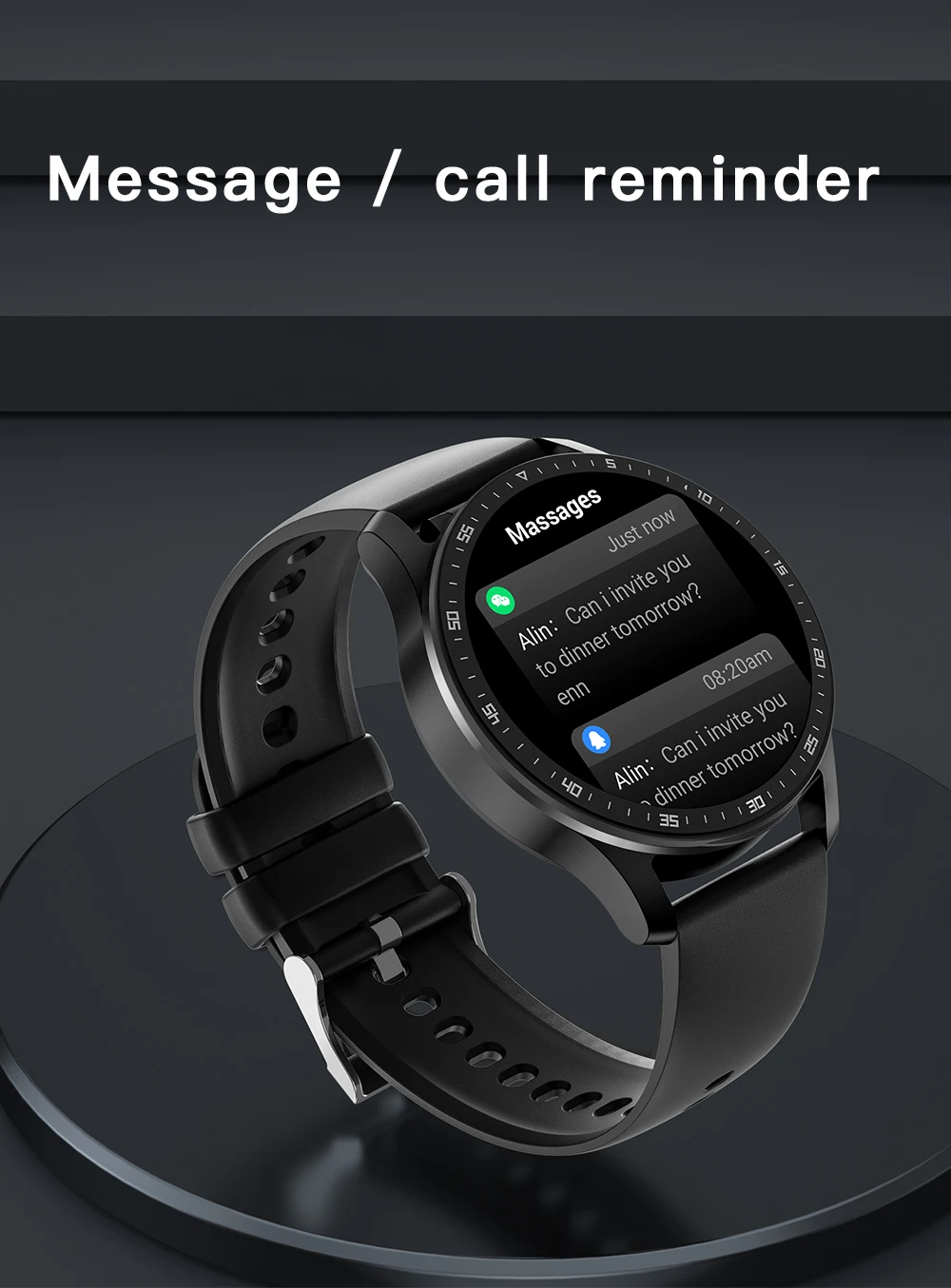- Function: Passometer,fitness tracker,Message Reminder,Call Reminder,Answer Call,Dial Call,Push Message,Big Three Needles,24 hour instruction,Chronograph,Alarm Clock,Small Second,World Time,Power Reserve,week,Month,Heart Rate Tracker,Interactive Music,Noctilucent,Calendar